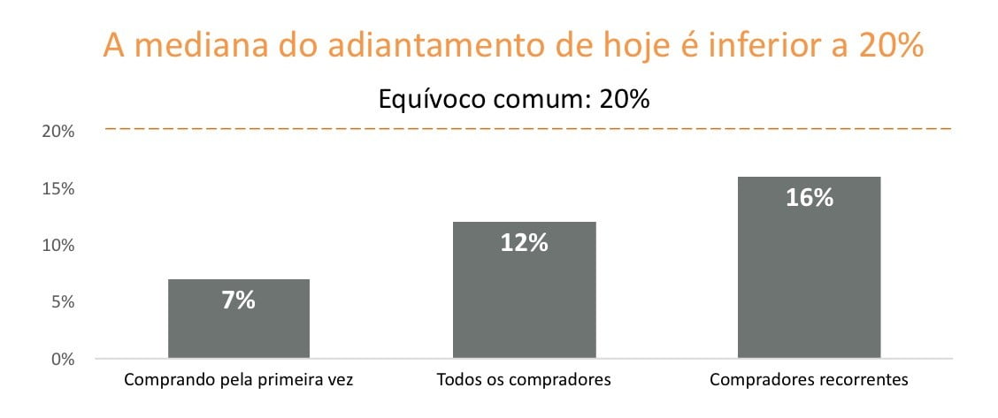 O Perfil de Compradores e Vendedores de Imóveis de 2020 da National Association of Realtors (NAR) observa como a mediana do pagamento inicial não é superior a 20% desde 2005 e, mesmo então, isso foi apenas para compradores recorrentes, não compradores de primeira viagem.